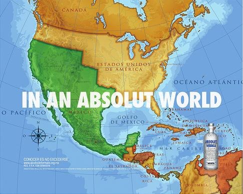 Um anúncio feito pela mexicana Teran/TBWA está a ponto de provocar um incidente diplomático. Para a campanha In An Absolut World, da vodca Absolut no México, lançaram um impresso que ilustra a fronteira daquele país com os Estados Unidos no século dezenove, antes da anexação de territórios após a guerra entre os dois países.